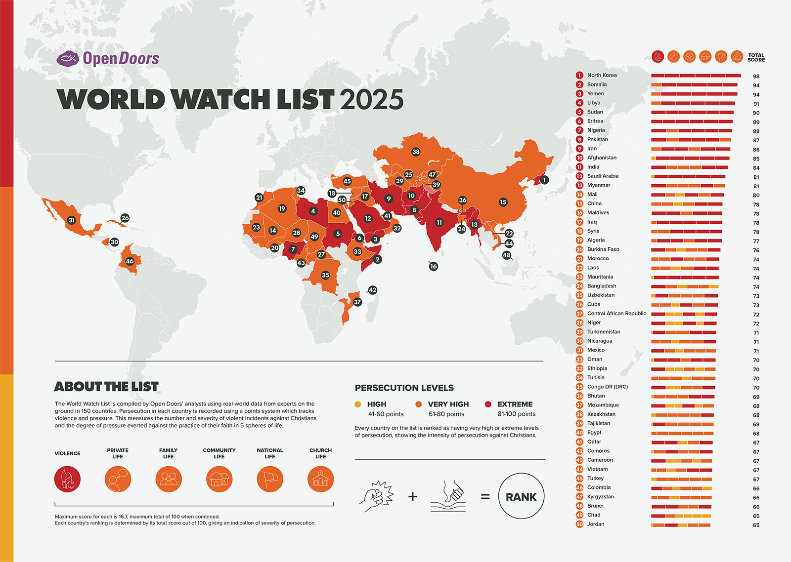 • pubblica la World Watch List, l’elenco annuale dei Paesi dove i cristiani sono più perseguitati